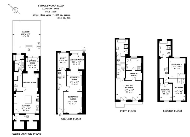 This is an impressive, freehold, four bedroom family house with excellent proportions and extending to 2,511 square feet. Arranged over four floors, the well balanced accommodation includes a classic ground floor reception room leading into an impressively high conservatory. Downstairs is an open plan kitchen, dining, sitting room and a laundry room. Upstairs is a large master bedroom suite, 3 further bedrooms and a study . The house has a pretty garden and a pleasant, open aspect to the rear and is located just off Fulham Road making it exceptionally convenient for all of the local amenities.5 3 2 Sales Office
